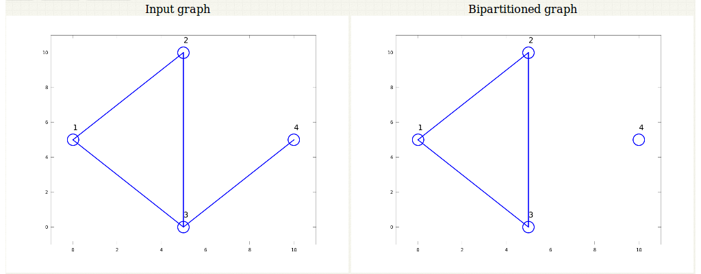 Figure 2 illustrates a graph with 4 nodes before the process of annealing. Figure 2 shows the input graph and the bipartitioned graph.